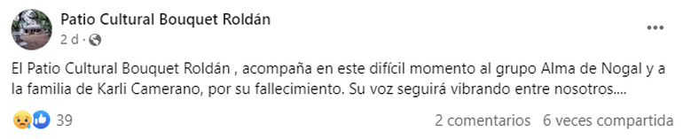 "Se fue nuestro amigo, nuestro hermano de la música... tu partida arrasa nuestras almas y nuestro entendimiento, pero nos deja también el sentimiento de amor más profundo, ese que tuvimos el privilegio de construir a lo largo de los años, ese que nos permitirá traerte en el recuerdo de inolvidables vivencias, de tantos escenarios, canciones y viajes compartidos, de tu sonrisa fácil, de tus divertidas ocurrencias, de tu maravillosa voz y tu don para tocar la guitarra", expresaron.