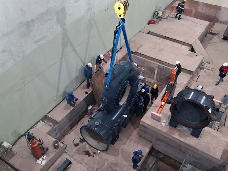 Actualmente, la obra se encuentra en pleno desarrollo la primera etapa del montaje del equipamiento electromecánico, una fase clave para la futura generación de energía hidroeléctrica.