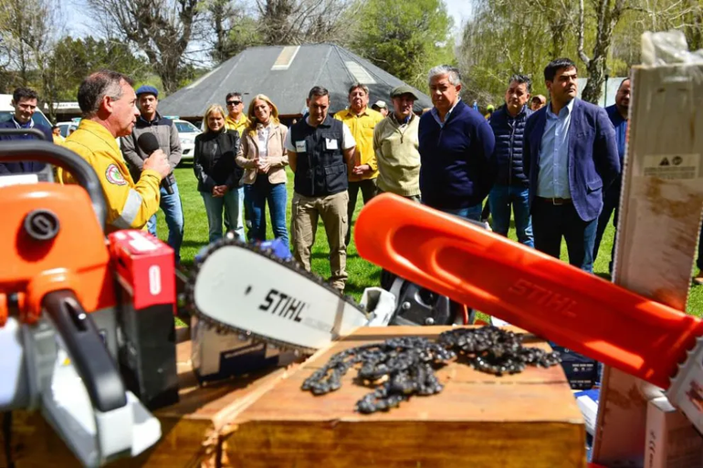 Parte de este equipamiento se entregó este viernes en Junín de los Andes, durante una visita del gobernador Rolando Figueroa, que estuvo acompañado por el ministro de seguridad, Matías Nicolini, y la secretaria de Emergencias y Gestión de Riesgos, Luciana Ortiz Luna, que buscó poner en valor la tarea de quienes arriesgan su vida para proteger los bosques, la fauna y a las comunidades.
