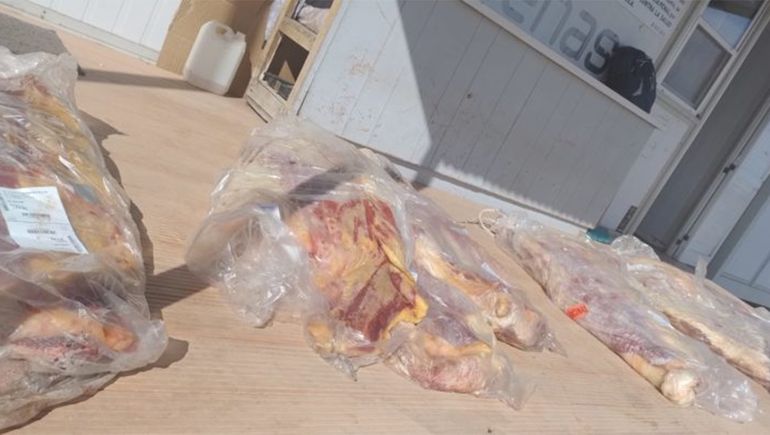 Con los ocupantes del auto aprendidos, los efectivos rápidamente realizaron la requisa correspondiente, y allí se constató que en la parte trasera transportaban costillares de carne sin las medidas de sanidad reglamentarias.