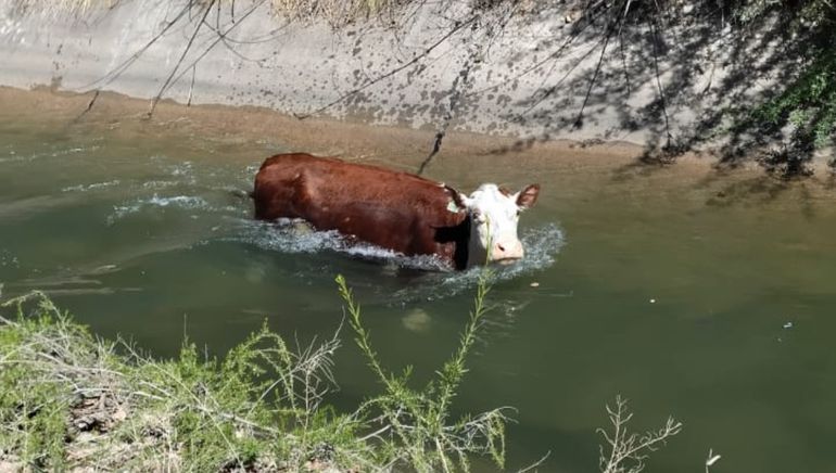 La particularidad de este tipo de canales es que tienen paredes de hormigón altas y lisas, lo que imposibilita que un animal de gran porte pueda salir por sus propios medios. Esa misma estructura fue la que obligó a los bomberos a desplegar un operativo de rescate poco común.