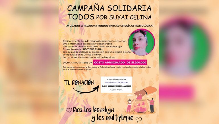 Los que quieran colaborar podrán hacerlo a través de la cuenta a nombre de Suyai Celina Barrera en el Banco Provincia de Neuquén (caja de ahorro) bajo el CBU 0970029151009944460017. O bien podrán colaborar con la compra de rifas que se publicarán tanto en el Facebook de Suyai como en el de la "Criminal Clan Batucada".