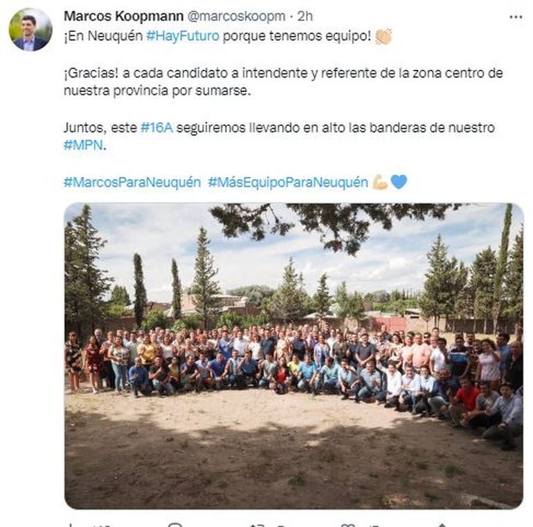 “Somos el único partido que tiene definidos los candidatos en las 57 localidades de la provincia y eso nos da una gran fortaleza territorial” dijo Koopmann, que le marcó a sus candidatos que “en estos 100 días que nos faltan para la elección, tenemos que seguir estando cerca de las familias neuquinas, escuchando en cada rincón de nuestro territorio porque es a partir de esa escucha que vamos a poder resolver los problemas y concretar los sueños y proyectos que los vecinos y vecinas tienen en las diferentes ciudades, pueblos y parajes”.