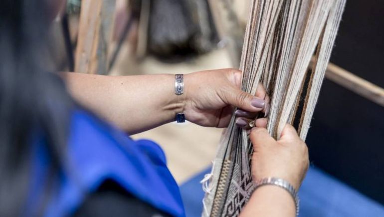 Georgina Calfuqueo brilló en el telar mapuche. La neuquina fue una de las 34 artesanas del país que tejieron un manto que fue entregado al papa Francisco.