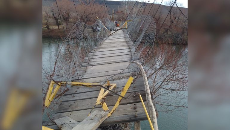 Los trabajos que se iniciaron a pocos días de sucedido el fenómeno meteorológico han avanzado notoriamente, pero según se evidencian en fotografías y videos hay al menos un 40% que resta reparar y que representa un potencial peligro para todos aquellos que se animen a traspasarla sobre las aguas del río Agrio.