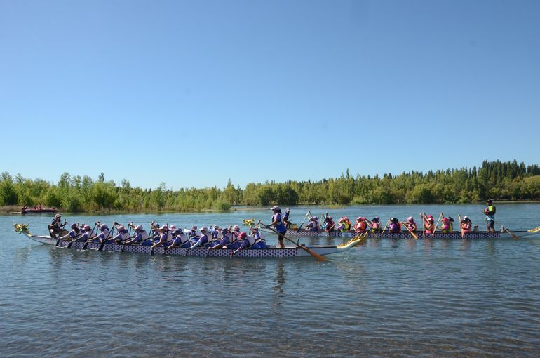 En el Día Mundial de la Lucha contra el Cáncer se desarrollo la cuarta edición de la Regata Rosa, que partió este sábado por aguas del Limay desde el balneario La Herradura hasta el de Sandra Canale en la capital neuquina.
