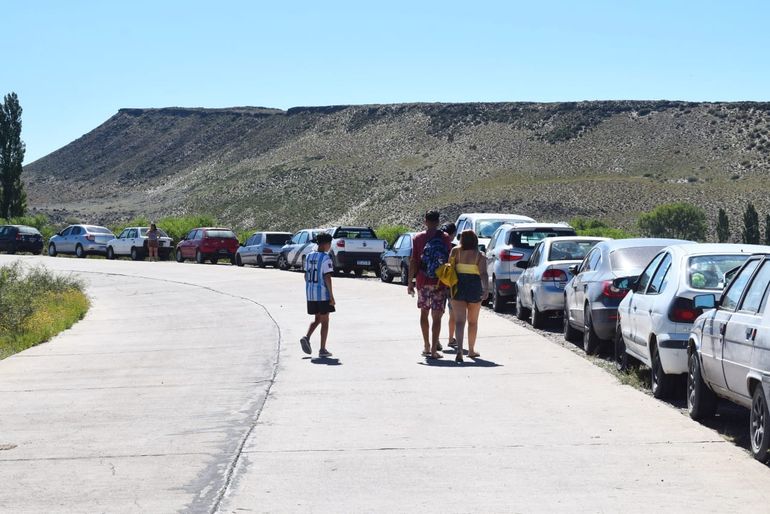 Ambos bordes de la ruta se convierten durante todo el día en improvisados parques de estacionamiento lo que le da una imponencia mayor al paisaje, ya que para llegar al río se debe bajar una loma de unos 100 metros hasta la costa.