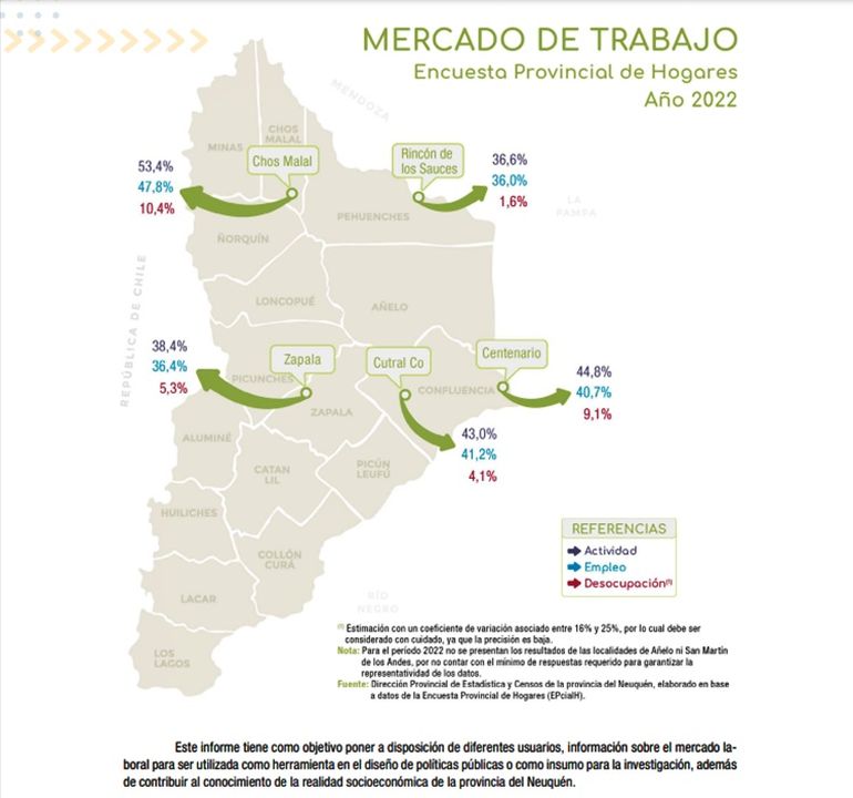 "Este informe tiene como objetivo poner a disposición de diferentes usuarios, información sobre el mercado laboral para ser utilizada como herramienta en el diseño de políticas públicas o como insumo para la investigación, además de contribuir al conocimiento de la realidad socioeconómica de la provincia del Neuquén", explicaron los autores del trabajo estadístico.