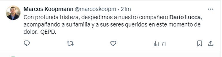 La despedida a Darío Lucca en las redes sociales