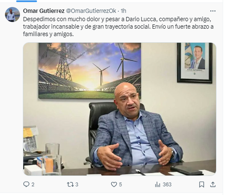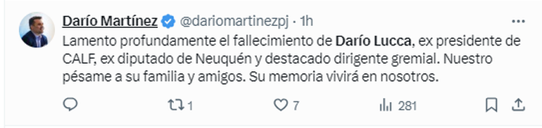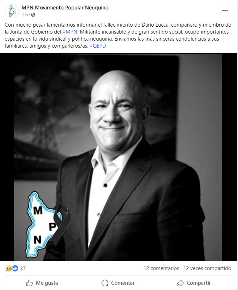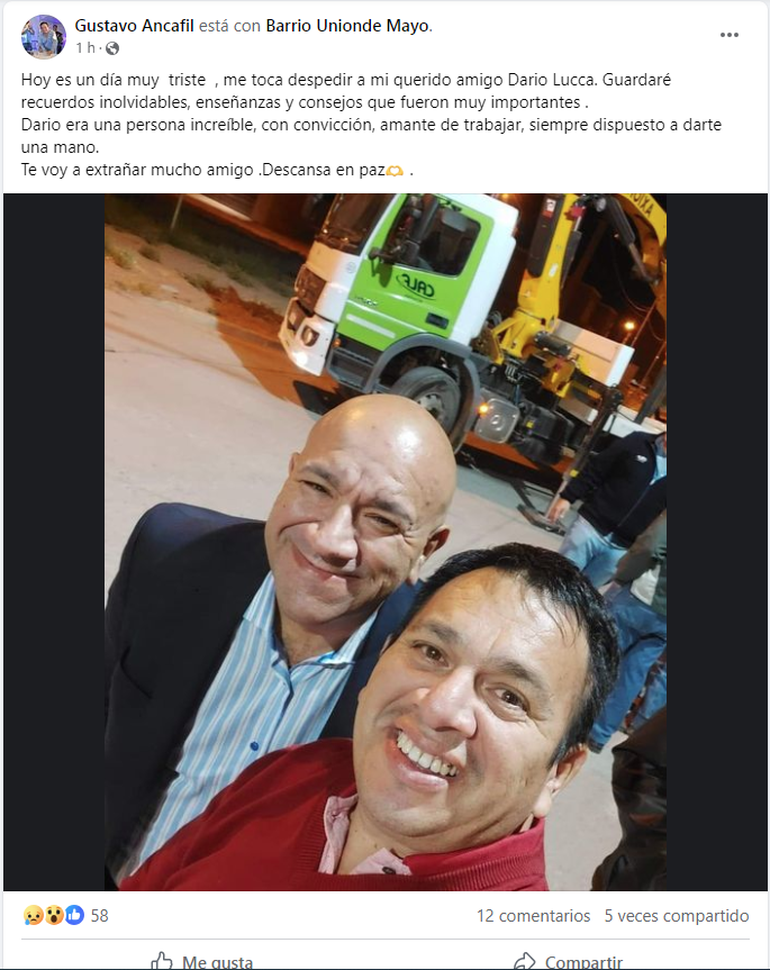Este lunes se conoció el fallecimiento del expresidente de CALF, Darío Lucca, tras una larga lucha contra el cáncer. La noticia que generó gran consternación entre los neuquinos, lo que generó que sus amigos y conocidos utilizaran las redes sociales para despedirlo.