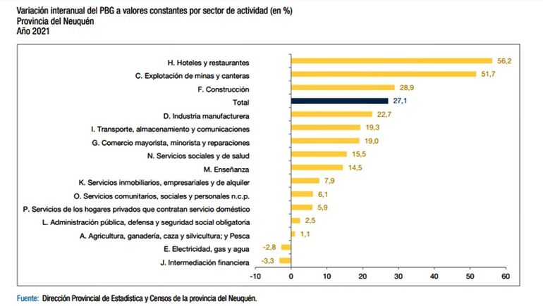 La economía neuquina creció 27% anual en 2021, según la estimación del PBG de ese año que acaba de difundir Estadísticas de la provincia. Efecto Vaca Muerta.