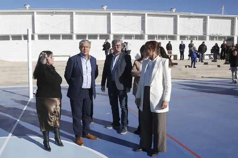 El mandatario junto a la titular de Educación y el intendente de Plaza Huincul inauguró el nuevo espacio para la práctica deportiva de la EPET 10.