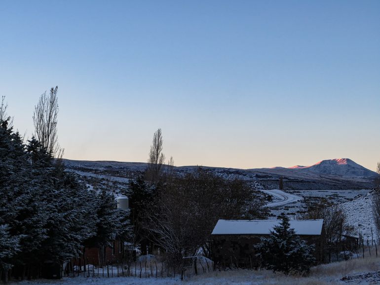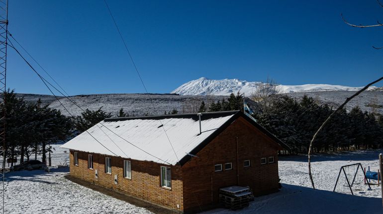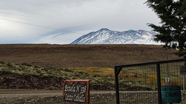 A 35 kilómetros de Chos Malal, hay una escuela de 3 alumnos, que sigue firme como el mástil de la bandera azul y blanca de las fotos. Todo un símbolo, en medio del campo apenas cubierto por la nieve que comienza a caer con los primeros fríos, temperaturas bajo cero y un paisaje de fondo que magnifica la soledad.