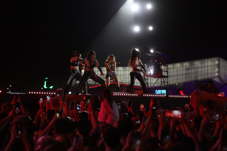 Fue a la medianoche que ella se subió al escenario. Los espectadores estaban pegados al escenario. El resto detrás de valla, también pegados a ella para poder estar lo más cerca posible.
