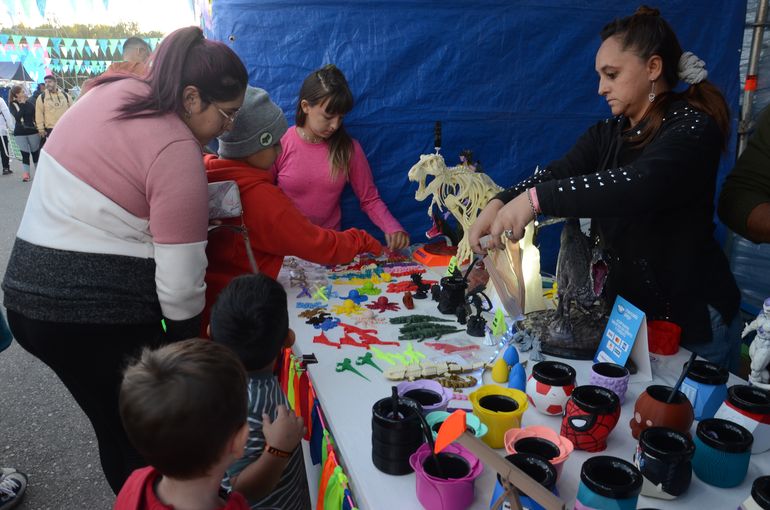 El predio de la Isla 132 dispuesta para la Fiesta Nacional de la Confluencia guarda un lugar especial para 216 emprendedores quienes exhiben y comercializan productos como figuras 3D, tortas y sanguches, pañales reutilizables, indumentaria, guardapolvos, artesanías, cremas naturales, casitas para pájaros y muchas cosas más.