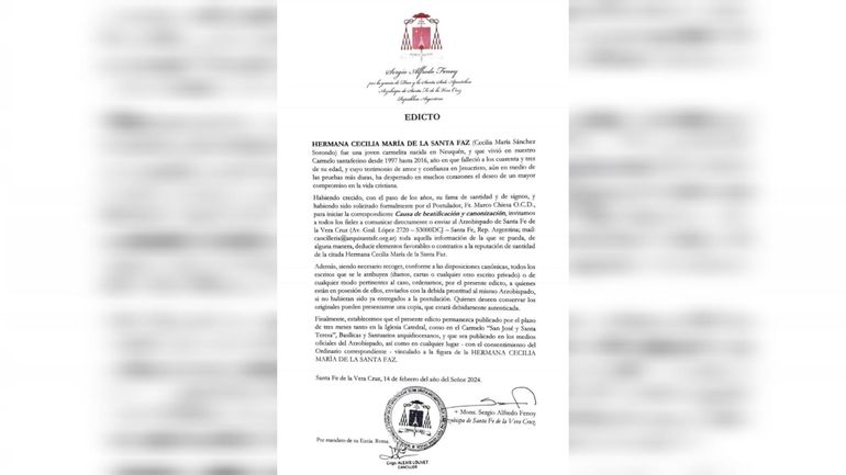 El edicto permanecerá publicado tres meses tanto en la Iglesia Catedral como en el Carmelo San José y Santa Teresa, basílicas y santuarios arquidiocesanos, y en los medios oficiales del arzobispado, así como en cualquier lugar vinculado a la figura de la Hermana Cecilia.
