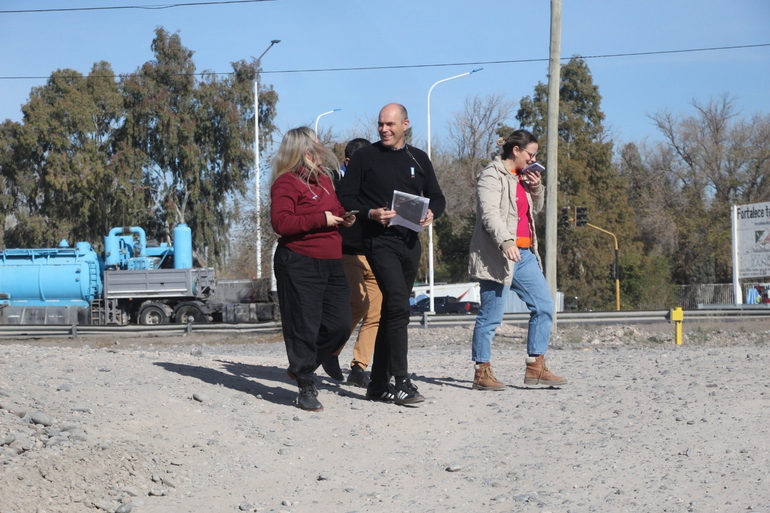 Cimolai recorrió el área de bajada Nueva España junto a la secretaria de Planificación y Ordenamiento Territorial, Eugenia Jafella y la subsecretaria de Planificación y Desarrollo Urbano, Cecilia Barrera, con quienes observó en territorio y con planos la proyección de la obra. También lo acompañaron el secretario de Transporte, Tránsito y Bromatología, Benito Torres, y el director de Seguridad Local, Claudio Pistagnesi.