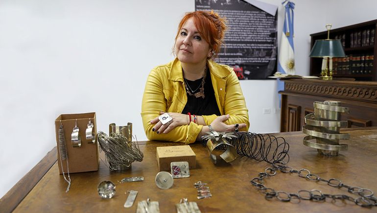 —Trato de volcar a lo que hago una identidad, que se expresa en las formas de unir las piezas, en la búsqueda de las texturas. Por ejemplo, esta pieza grande —dice señalando un brazalete—yo digo que es el viento. Todo tiene su significado, aunque algunas sean más abstractas. A veces me gusta ver qué puedo sumar de Neuquén a mi trabajajo, a veces es sólo salirse de eje y crear. A veces la prioridad está en registrar lo que me hizo sentir la pieza cuando la creé.