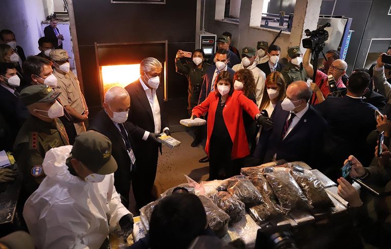 La destrucción de la droga se realizó este mediodía en el horno crematorio del cementerio central de Neuquén. El mandatario agradeció la visita de la funcionaria nacional a la provincia.