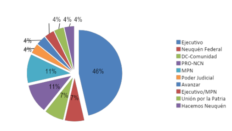 Respecto a la autoría de cada iniciativa, el gobernador Rolando Figueroa presentó 13 de los proyectos que se convirtieron en ley. En tanto, el bloque PRO-NCN aportó tres, igual número el MPN y tanto el bloque oficialista DC-Comunidad como Neuquén Federal lo hicieron con dos.