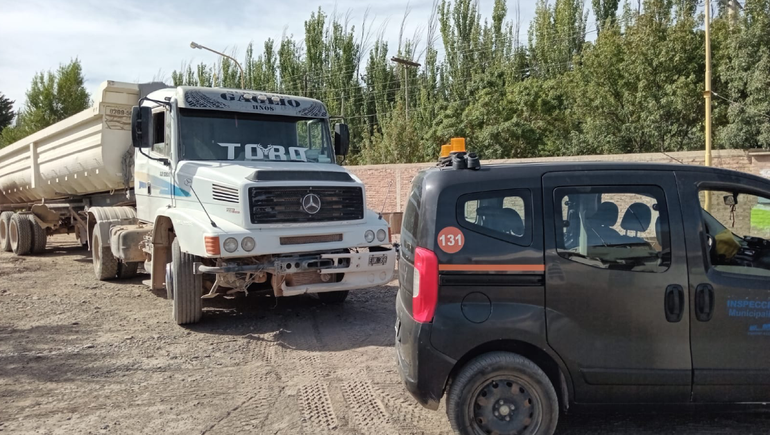 El procedimiento se llevó a cabo este martes, a partir del llamado que realizó la dirección de Seguridad de la Municipalidad de Centenario. Enseguida, los inspectores de Tránsito interceptaron el camión circulando entre la segunda y tercera rotonda de la Ruta 7. "Iba con áridos. El conductor refirió que llevaba el material hasta una cantera de Vista Alegre Sur", informó el subsecretario de Tránsito, Transporte y Bromatología, Rubén Reyes.