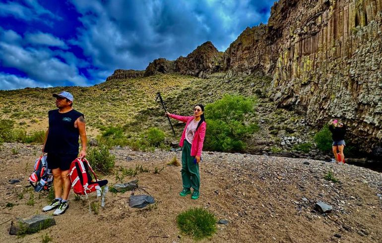 “Aguas Calientes” es un cañadón con paredes de basalto de alturas impresionantes y un arroyo que ofrece aguas termales naturales. El trekking es de media a baja dificultad, ya que se puede caminar sobre piedras y senderos sin grandes obstáculos.