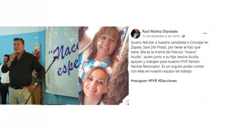La madre del Huevo Acuña será candidata a concejal por un partido vecinalista de Zapala. Sara del Prado dejó trascender la noticia cuando la selección que integra su hijo avanzaba en el Mundial de Qatar. La madre de Marcos Acuña está acostumbrada a verse en los medios por la trascendencia que ganó la carrera del futbolista. Ahora hará campaña electoral.