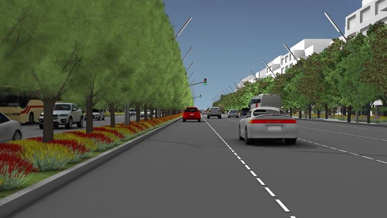 El proyecto original que en su momento presentó la Municipalidad de Neuquén para la Avenida Mosconi consistía en llevar la ruta a nivel, para después construir una bicisenda y la senda peatonal en el centro de la avenida, que separe las dos manos del tránsito.