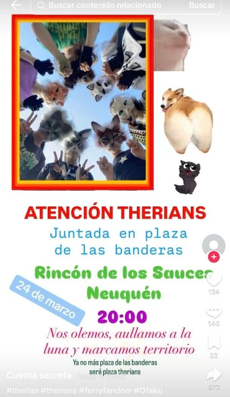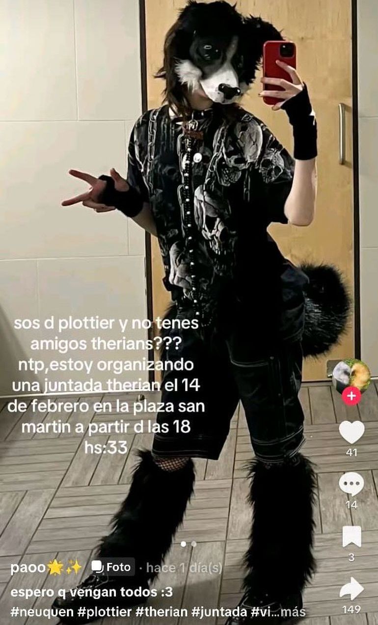 En Zapala, la difusión fue especialmente llamativa. El mensaje, publicado de manera anónima y luego republicado tras ser retirado, plantea la intención de realizar “la reunión más grande de therians” en la ciudad. Incluso menciona la disponibilidad de unos 50 trajes para quienes quieran participar.