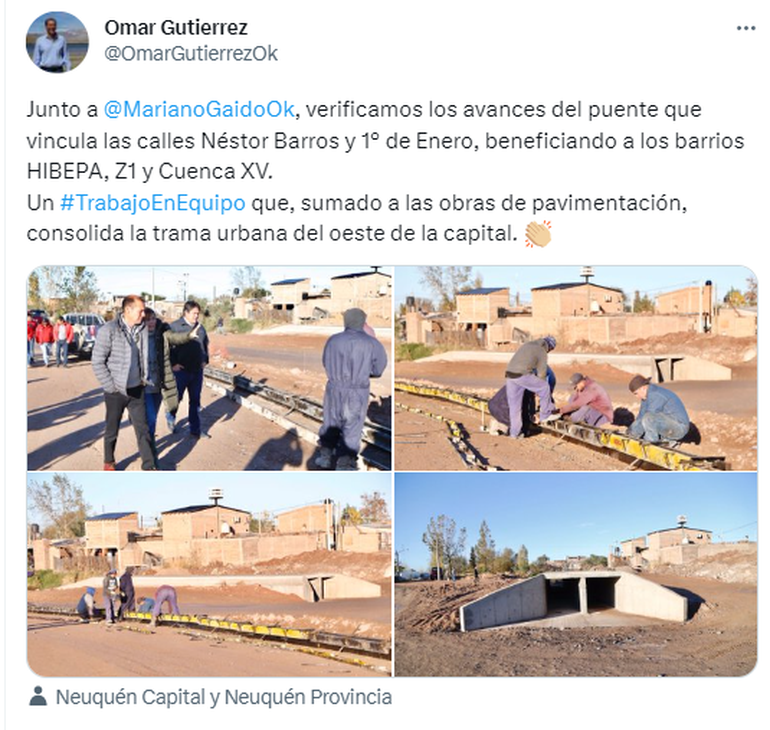 "El asfalto y el puente permiten darle la jerarquía que necesitaba este sector de la capital neuquina", djo.