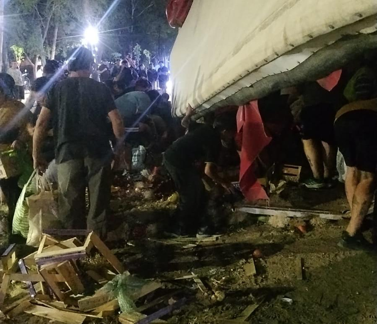 Durante el procedimiento, el operador de la grúa fue atacado con piedras por algunas de las personas que se encontraban alrededor. Frente a esta situación, la grúa se retiró y horas más tarde llegó otra para continuar con las tareas.