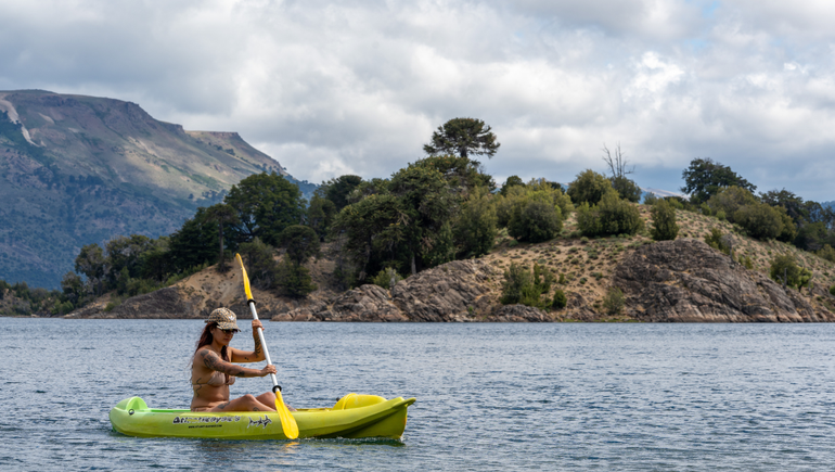 Mientras el entorno invita a la actividad física —con kayaks y tablas SUP incluidos, así como proximidad a cinco lagunas y el volcán Batea Mahuida—, el complejo ofrece un espacio denominado DomoZen. Allí se realizan rituales sensoriales, tratamientos faciales y corporales con biocosmética y se brindan opciones de uso de tinturas madre de hongos adaptógenos como melena de león y reishi, entre otros. La cocina (opcional) acompaña con platos preparados con insumos patagónicos y otros elaborados con harina y aceite de cáñamo agroecológico, de altísimo valor nutricional.