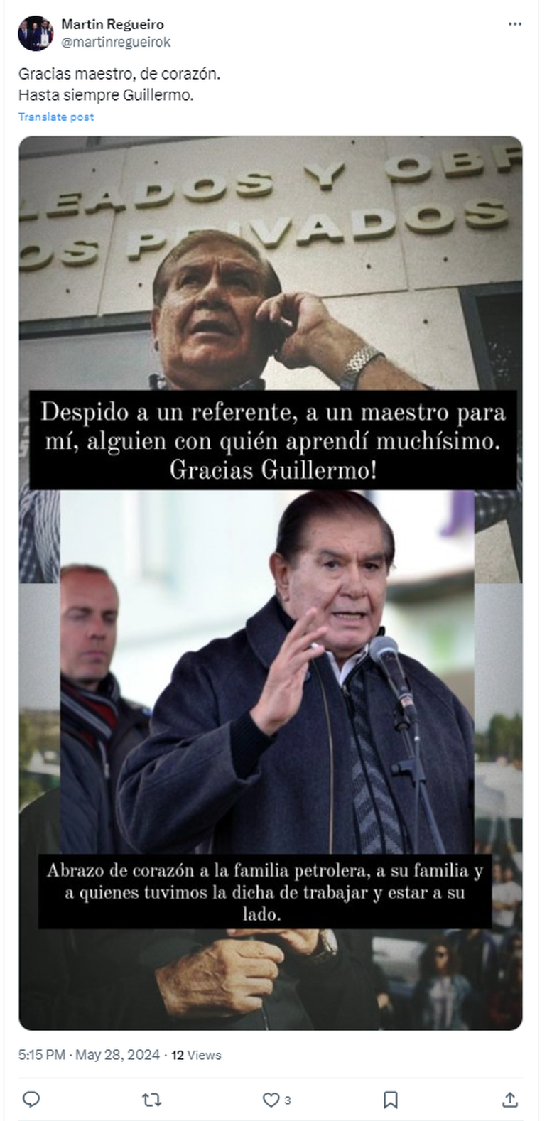 La despedida a Guillermo Pereyra en las redes sociales