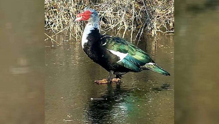 En el Alto Valle las postales de la ola polar son incluso más elocuentes. En Cinco Saltos se congeló el Arroyón y el pato mudo quedó parado en la superficie. La imagen que captó una vecina se volvió viral en redes sociales.