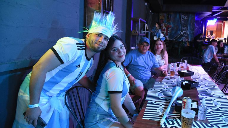 En Mood impera un ambiente heterogéneo. A pesar de la ambientación nocturna, con la penumbra y los carteles de neón, son muchas las familias que quisieron ver el juego en la pantalla gigante, con una emoción que se ensancha en ese ambiente compartido. Los chicos disfrutan su mundial con un folklore exagerado: se pintan banderitas en el rostro y lucen mil y un versiones de la camiseta de Messi. Y llevan banderas, y gorros y hasta pantalones celestes y blancos. Por primera vez son conscientes de una alegría en común, que detiene al país y vuelve a encenderlo cada vez que el pitido de un referí declara una victoria.