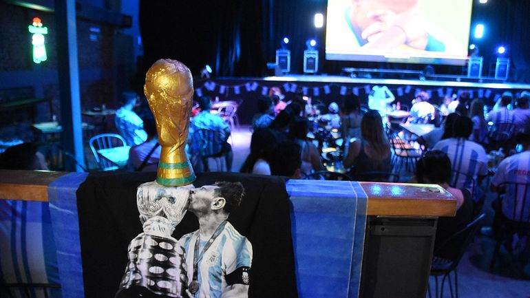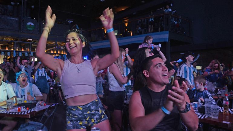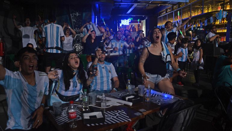 Patada y gol. Los jugadores corren a abrazarse en el estadio de Qatar. Y Mood explota. Gritan con el volumen de la victoria que se merecían. Las parejas se abrazan y los niños se hunden en los brazos de sus padres como borrándose el dolor del final del juego. El local se llena de luces y de ruido. Otra vez los cantos, los reflectores, las vuvuzelas. Y así, todos celestes y blancos, salen al calor de diciembre para festejar en el monumento a San Martín, donde esperan los fanáticos más ansiosos y una importante comitiva policial.