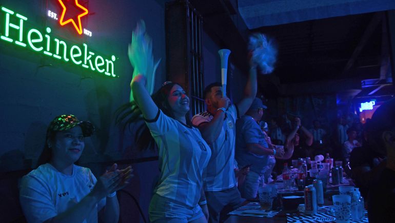 Ya está. Es ahora. El himno neerlandés primero, porque ya no les dicen holandeses. Y ese naranja que muchas veces fue un fantasma de la eliminación. Pero después entonan el himno argentino, y el público de Mood se levanta y corea la melodía con una voz que hace temblar al local. Un reflector ilumina la pista de baile como si fuera un estadio en un juego nocturno. "Oooh, te vinimos a alentar", cantan mientras los once de Scaloni dan los primeros toques.