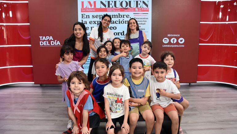 Jazmín Linco, Emma, Francisco, Rocío, Sofía, Tomás, Bautista, Vera, Lorenzo, Jazmín Traba, Pedro y Thiago van a la salita Lila del Jardín 1 "Conejito" de esta ciudad y estuvieron en la redacción de LMNeuquén para observar cómo se trabajan las noticias en las diferentes plataformas que tiene el diario.
