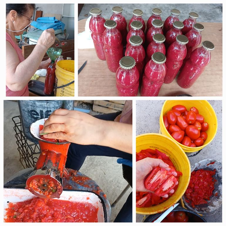 Algo de choclo está quedando. Achicoria, lechuga muy poco, zapallito verde...albahaca, ají picante, orégano y otras hierbas.Hace pocos días atrás, utilizaron los tomates para hacer salsa; un ritual que Filomena realiza todos los años con mucho placer y dedicación. "Ahora viene el otoño, y mi mamá planta otras cosas...verduras de hojas verdes como la acelga", indicó.