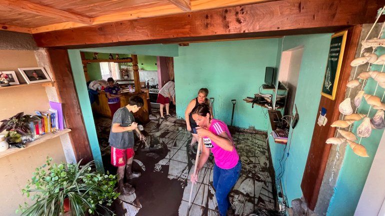 Según informaron, en total fueron siete viviendas afectadas debido a que el barro que ingresó a sus interiores.