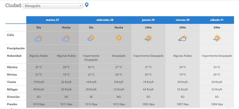 La última semana de 2022 llega con tiempo caluroso, viento y algunas tormentas en Neuquén y el Alto Valle, según el reporte de la Autoridad Interjurisdiccional de Cuencas (AIC).