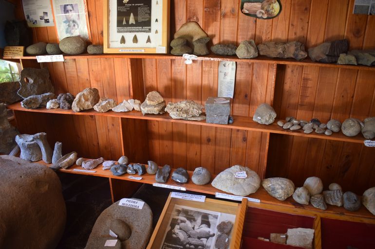 Además se pueden observar troncos petrificados, diferentes maderas, piedras moledoras de trigo, una rueda de piedra del primer trapiche aurífero de la zona y otras herramientas utilizadas por los mineros.