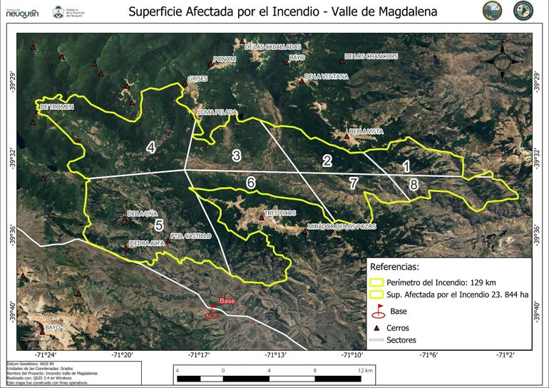 Según la información brindada este lunes por las autoridades, el Comando Unificado entre el Parque Nacional Lanín y el Gobierno de la Provincia de Neuquén detallaron que el incendio en “Valle Magdalena”, se mantiene activo y la superficie actualizada es de 23.844 hectáreas.