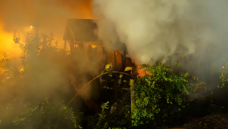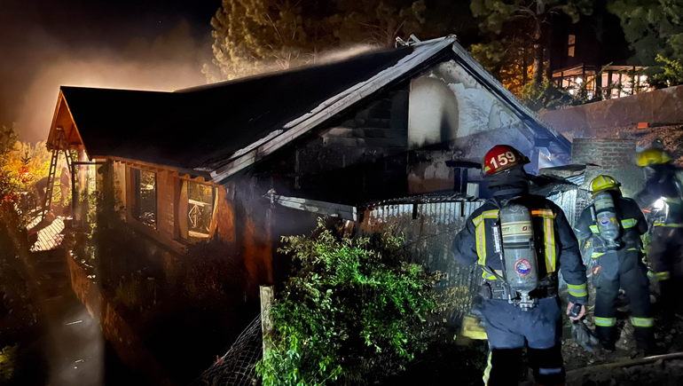 Por causas que se investigan, se desató un incendio voraz en un galpón del barrio Rucahue, en San Martín de los Andes, que luego se propagó hacia la vivienda lindante.