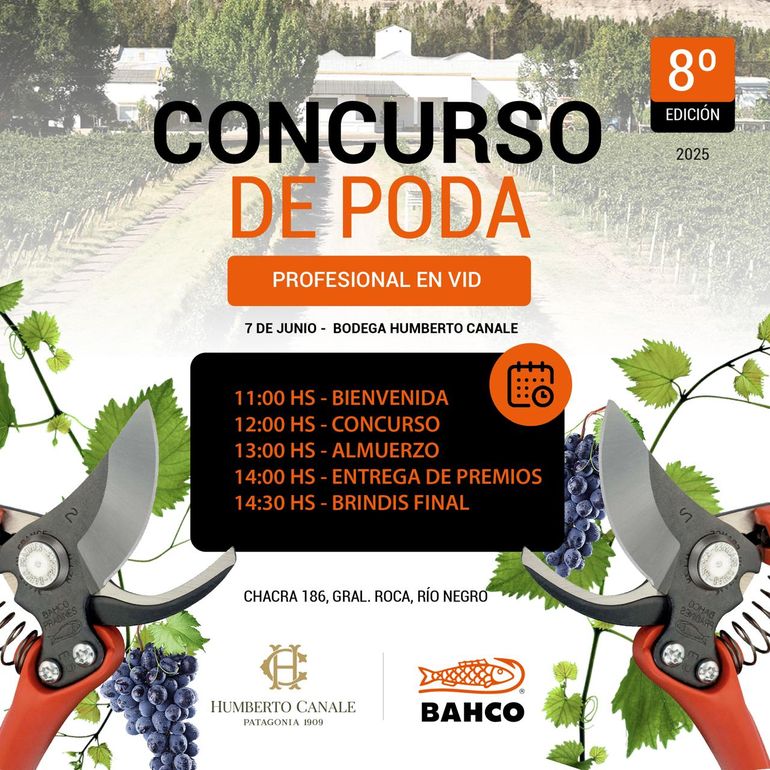 El próximo 7 de junio de 2025, la Bodega Humberto Canale en General Roca, Río Negro, será sede del 8° Concurso de Poda Profesional en Vid. Con el auspicio de Bahco, una marca líder en jardinería, la actividad busca destacar la importante labor de los podadores en la producción de vinos de la región.