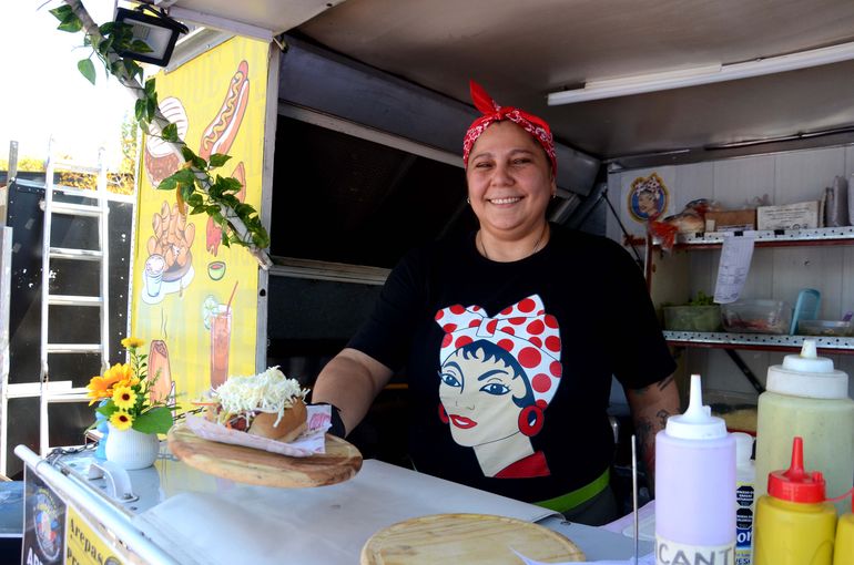 Se instalaron con su gazebo y comenzaron a vender sus productos a un público cada vez más grande. "Ahí vimos el potencial que podíamos explotar", cuenta María de los Ángeles. "Y quisimos dar a conocer un poquito más de nuestra gastronomía." El menú creció hasta los 15 tipos de relleno: reina pepiada —pollo con palta—, bondiola, porotos, periquito —huevos revueltos con tomate y cebolla de verdeo—, salchichas en salsa golf, chorizo a la pomarola, ensalada rusa, guacamole, queso llanero y otras delicias.