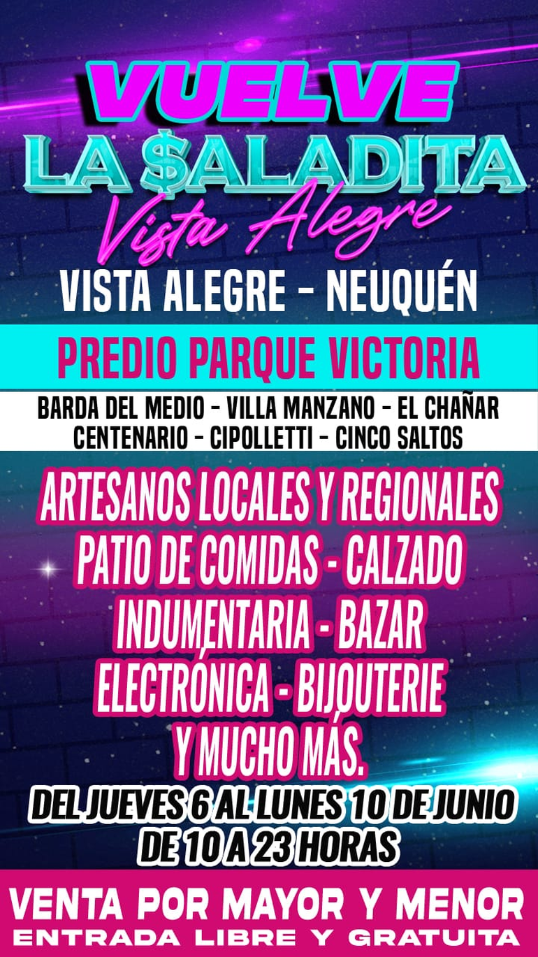 Ropa, calzado, bijouterie, juguetes, bazar y accesorios de electrónica son algunas de las ofertas que se pueden conseguir en La Saladita, la feria que convoca a fabricantes de sus propios productos, mayoritariamente. Desde este jueves y hasta el próximo lunes 10 de junio, desde las 10 de la mañana hasta las 23 horas, se puede disfrutar del evento en el predio "Parque Victoria", lugar de fácil acceso por ruta 7.