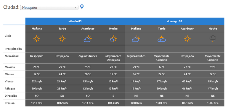 De acuerdo a la Autoridad Interjuridisccional de las Cuencas de los ríos Limay, Neuquén y Negro (AIC), el domingo la temperatura puede ascender a los 37 grados centígrados por la tarde, mientras que el lunes rondaría los 35 °C. Tanto calor puede generar inestabilidad y formación de tormentas en la zona de valles y meseta. También en la costa de Río Negro. Incluso habrá tiempo bueno en la cordillera, con períodos cálidos.
