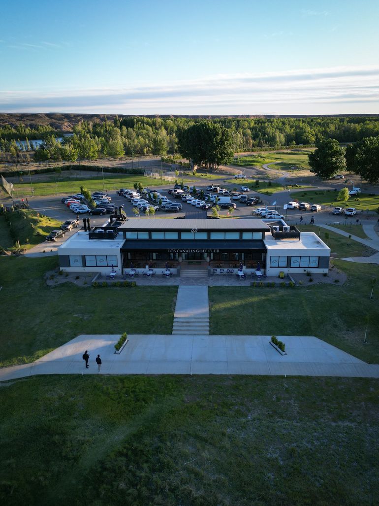 La infraestructura está compuesta por dos plantas de 500 metros cuadrados. En la parte superior, están ubicados el bar, el restaurante, un espacio pensado para eventos sociales y una startería. Por otro lado, en la planta baja se encuentra el estacionamiento para carritos eléctricos, un sector de lockers y los vestuarios, esenciales para la práctica de las diferentes actividades deportivas.