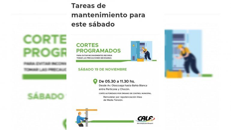 En tanto, gran parte de la ciudad de Plottier sufrirá otro corte de luz el domingo, desde las 6 hasta las 13.